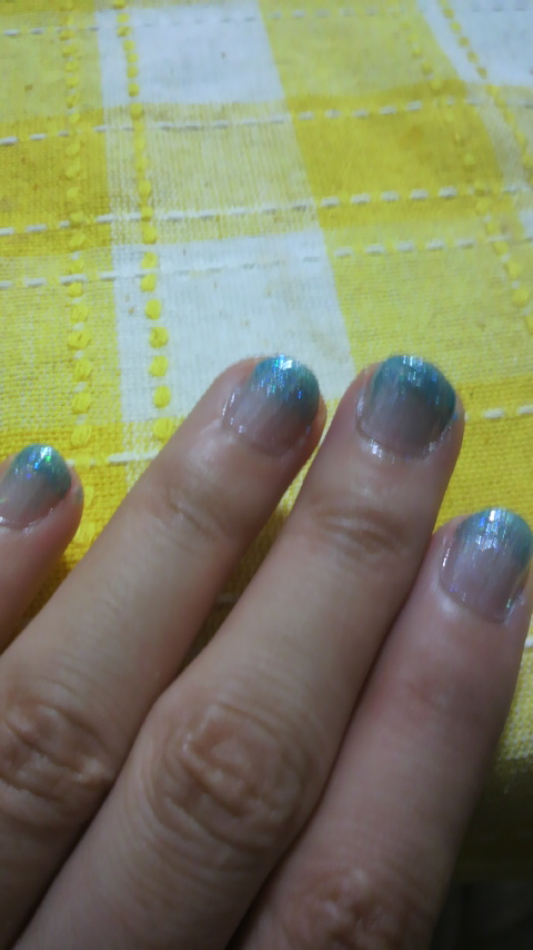 せっかくかわいいグラデのマニキュア買ったんだけど、長い爪に耐えられず、切っちゃったのと生来の不器用さがでて、なんとも残念な感じに。