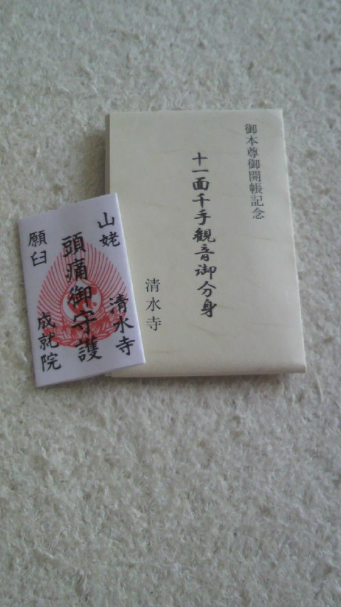 ちょうど頭が痛かったので、頭痛守りと前の事故で壊しちゃったので、身代わり仏。両方ともお財布の中に入れました。