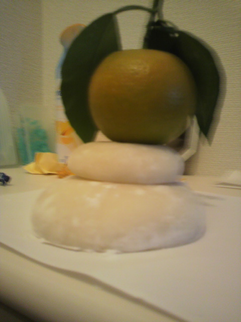 鏡餅が小さいのとだいだいが大きいのと、餅の弾力がありすぎるので、だいだいが乗っからないって、罠。